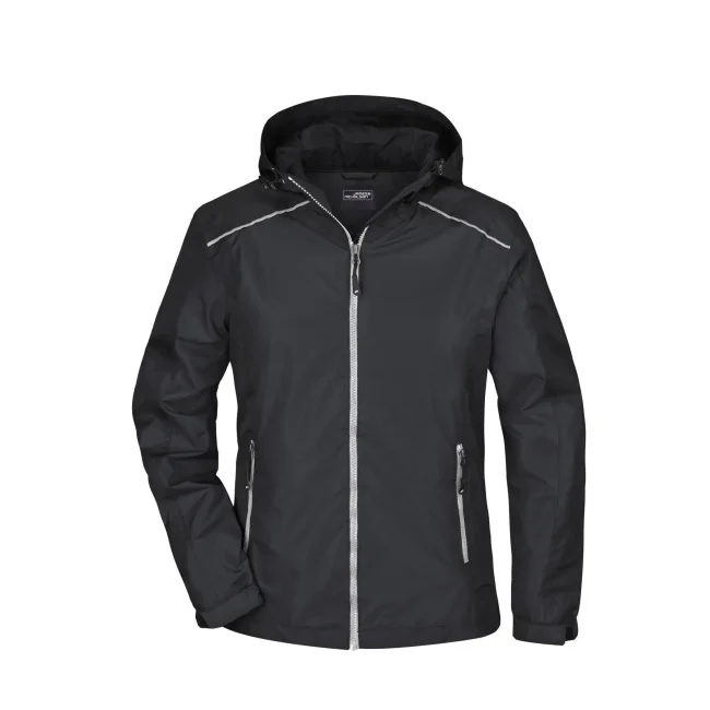 100% poliestere. Giacca da pioggia, casual e funzionale, Tessuto funzionale a 3 strati con membrana TPU. Antivento e idrorepellente (colonna d'acqua 3.000 mm), traspirante e permeabile al vapore (1,500g/m²/24 h), Cuciture nastrate, Zip a contrasto, Zip frontale a scomparsa con protezione per il mento, Cappuccio regolabile con cordino elastico, 2 tasche laterali con zip, Tasca interna, Dettagli riflettenti sul cappuccio e nelle parti frontali e posteriori. Zip per la decorazione sul retro, sciancrata, Tessuto esterno: 100% poliestere, Fodera: 100% poliestere. Velcro, Manica lunga, Fodera in rete, Colonna d'acqua 3.000 mm