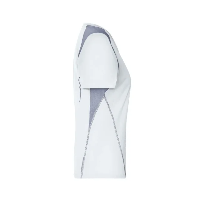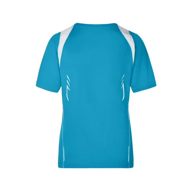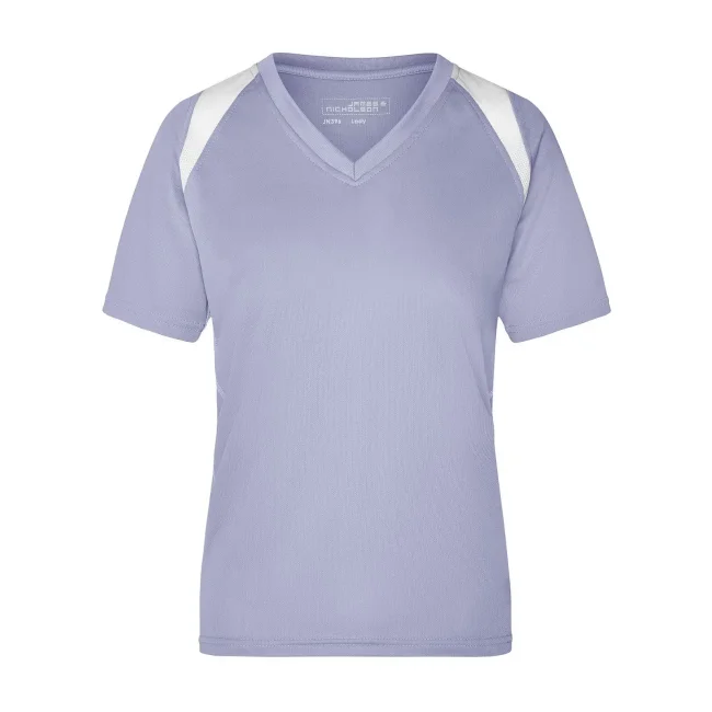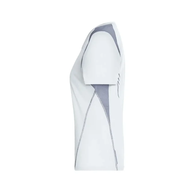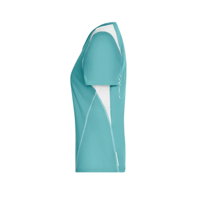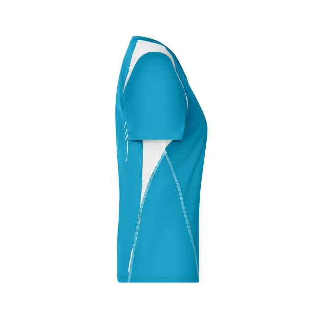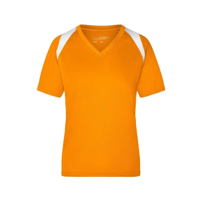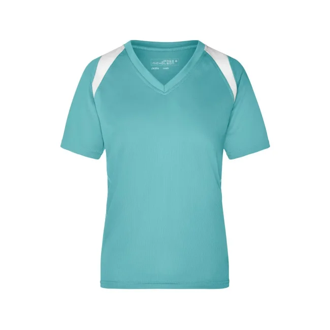 100% poliestere. T-shirt maniche corte, collo a V, tessuto leggero e comodo, traspirante, regola l'umidità, ad asciugatura rapida. Cuciture piatte, bordini e transfer riflettenti. Leggermente sfiancata, struttura con cuciture laterali.