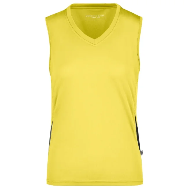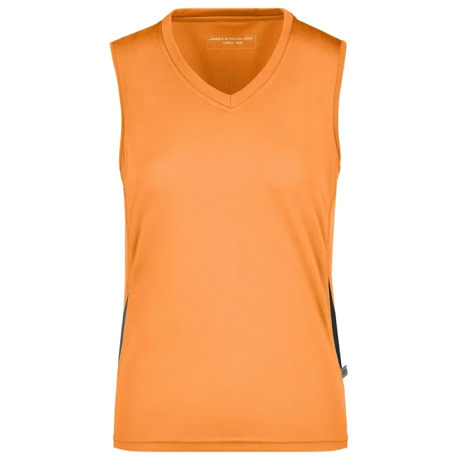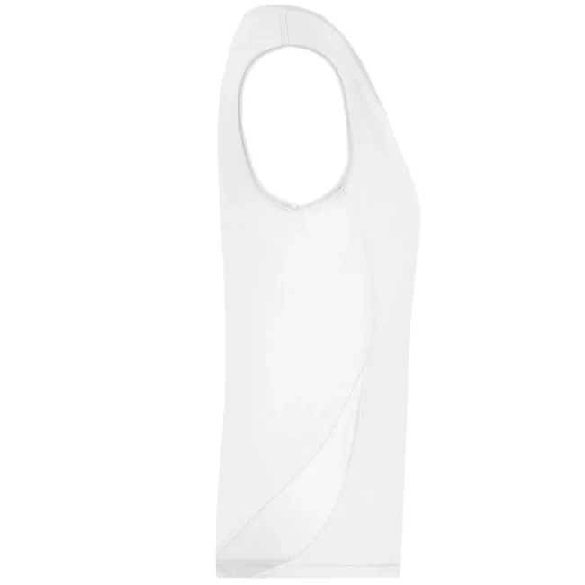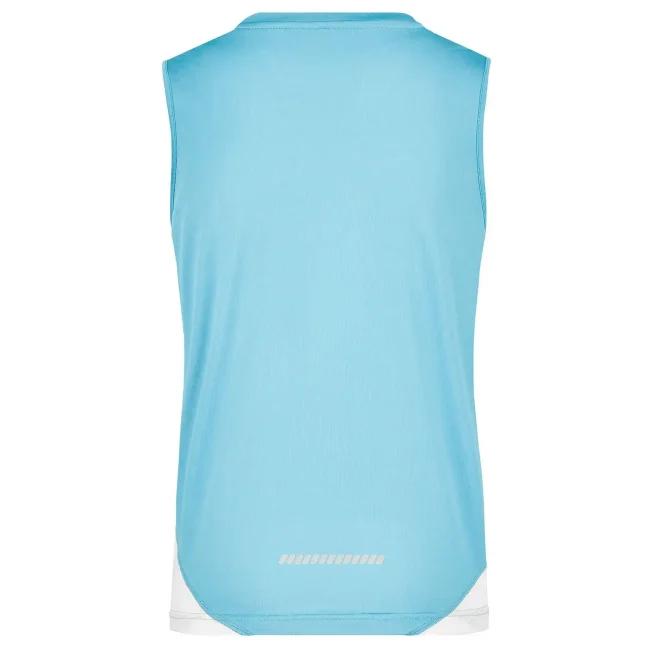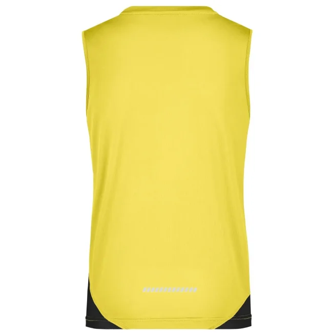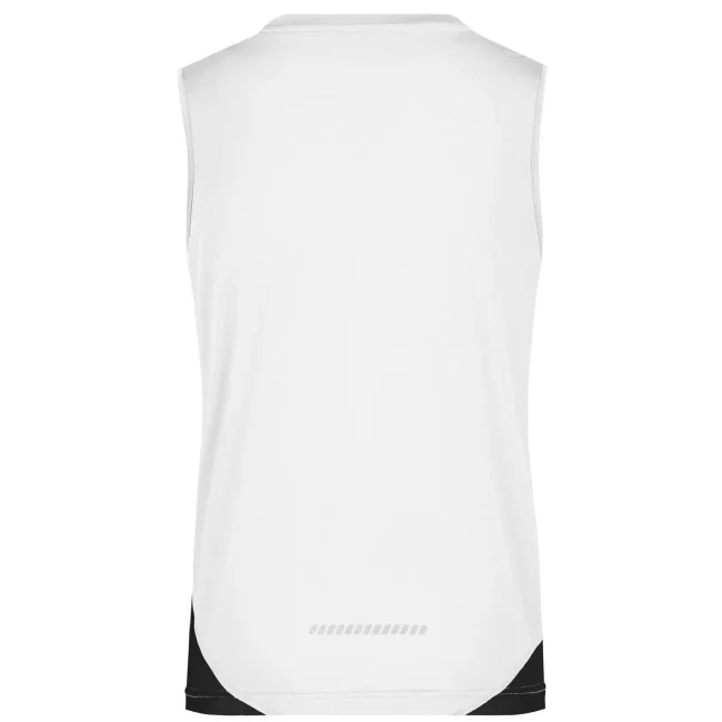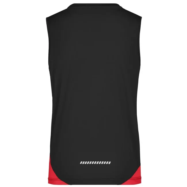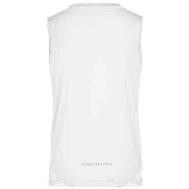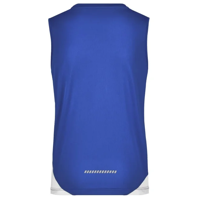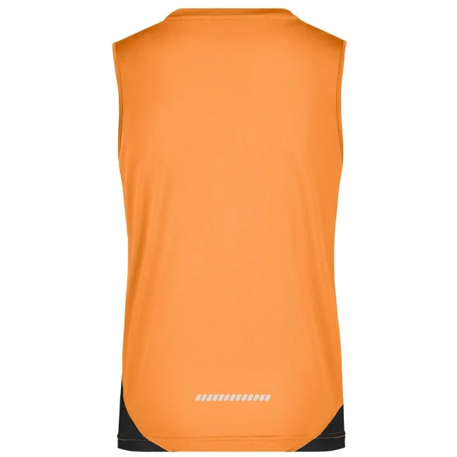 100% poliestere. Canottiera da corsa confortevole da indossare, regola l'umidità del corpo, traspirante e ad asciugatura rapida. Inserti in rete a contrasto, stampa catarifrangente sul retro, leggermente sciancrata, collo a V. Tessuto esterno (140 g/m²).