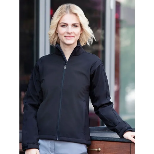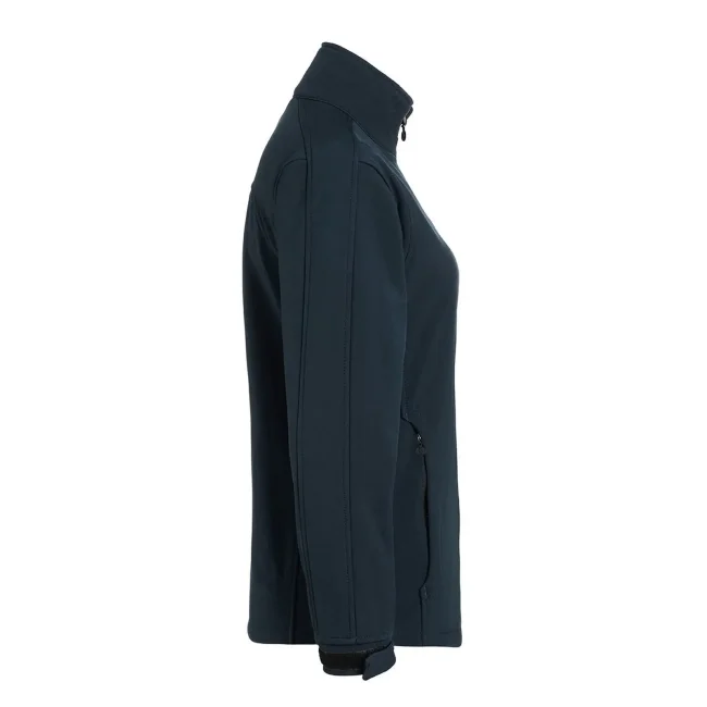 95% poliestere, 5% elastan. 330 g/m². Giacca softshell da donna in tessuto funzionale, leggermente sciancrata, interno in micropile, 3 strati di tessuto funzionale con membrana TPU, antivento, traspirante e impermeabile (colonna d´acqua pari a 5.000 mm), 2 taschini laterali con cerniere lampo, cordoncino elastico sull´orlo. Lavabile a 30°C.