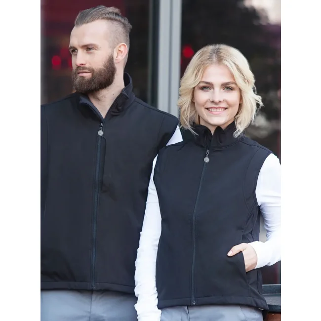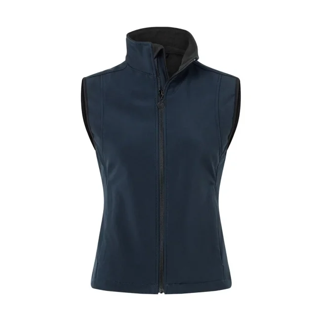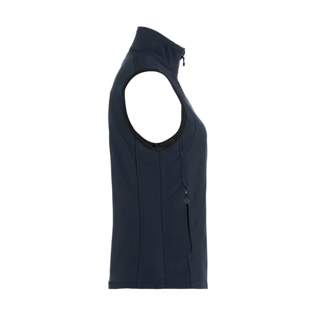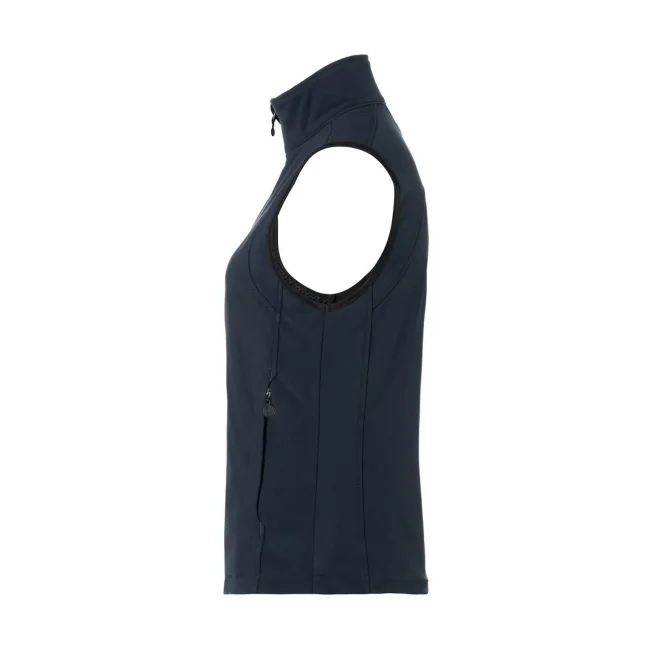 95% poliestere, 5% elastan. 330 g/m². Gilet softshell da donna, leggermente sciancrato, in tessuto funzionale: interno in micropile - 3 strati di tessuto funzionale con membrana TPU - antivento, traspirante e impermeabile (colonna d´acqua pari a 5.000 mm). 2 taschini laterali con cerniere lampo, cordoncino elastico sull´orlo, cerniera lampo frontale per apertura e chiusura rapide. Lavabile a 30°C.