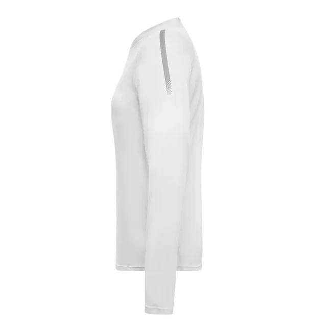 92% poliestere riciclato 8% elastan (tessuto esterno 1), 100% poliestere riciclato (tessuto esterno 2). T-shirt sportiva alla moda, traspirante e con regolazione umidità, asciugatura rapida, leggera e confortevole, maniche raglan, collo rotondo, retro leggermente lavorato, stampa a contrasto sulle spalle, leggermente sfiancata.