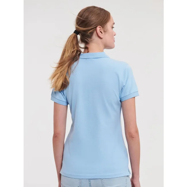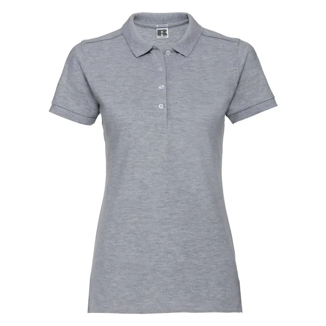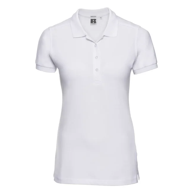 95% cotone, 5% lycra. Polo a maniche corte set-in, morbida al tatto, 4 bottoni a contrasto, colletto con risvolto sottile, maniche con costine, struttura con cuciture e spacchetti laterali, leggermente sfiancata. Light oxford: 88% cot. 7% vis. (White: 205 g/m²).