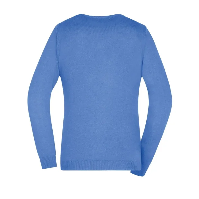 100% cotone pettinato. pullover donna con tessuto in maglia leggera, scollo a V. Lavabile in lavatrice. Leggermente sfiancata. Cuciture laterali.
