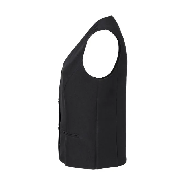 100% poliestere. Gilet donna basic in tela di lino, taglio largo e comodo, cuciture vienna, due tasche laterali, una tasca interna, tre bottoni.