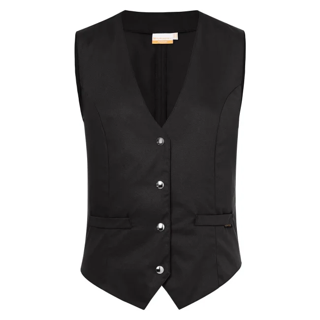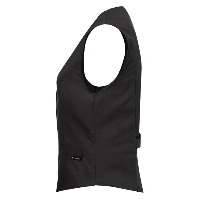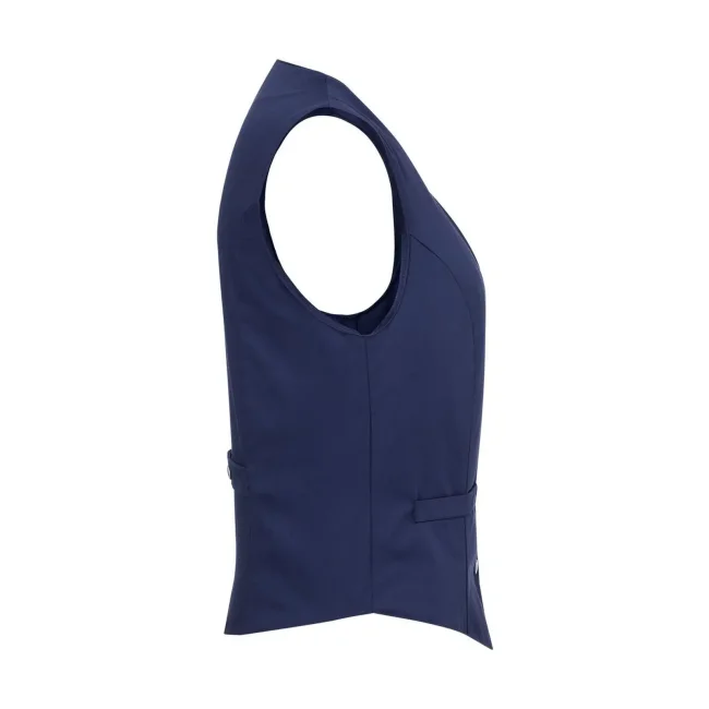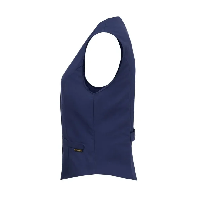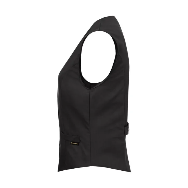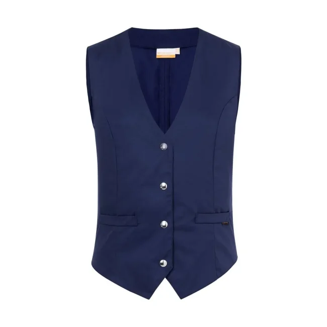 65% poliestere, 35% cotone. Gilet da donna Lena, cotone twill, 215 g/m² - tessuto rifinito, irrestringibile, lavabile, pratico - aderente, cuciture Vienna - regolabile in vita con legacci - 2 finte tasca, 4 bottoni sul bordo - adatto per lavaggi industriali.