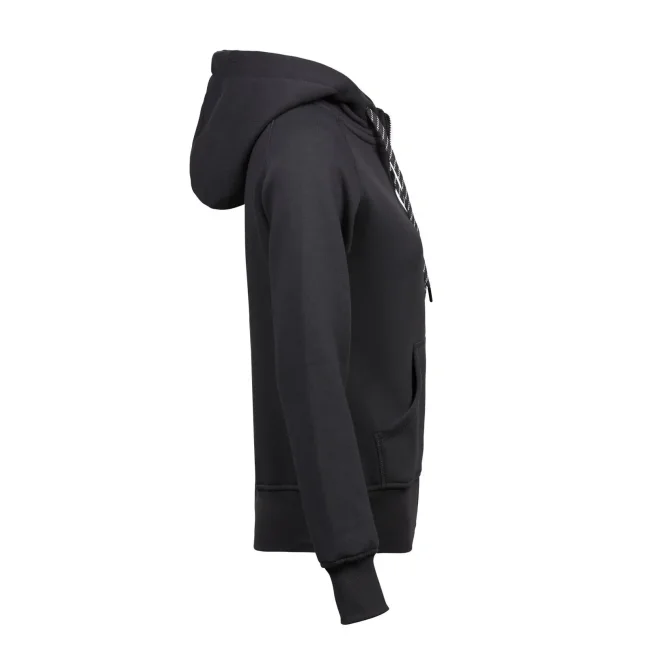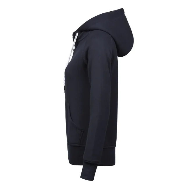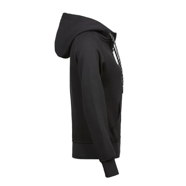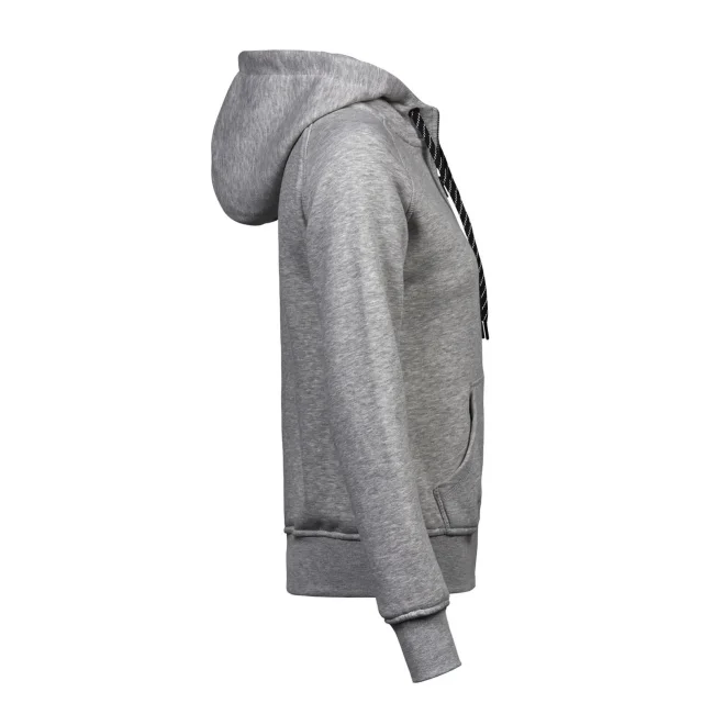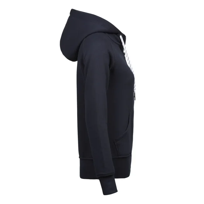 70% cotone ringspun, 30% poliestere. Felpa con maniche raglan, zip intera, cappuccio con cordoncino in contrasto, costina con lycra, doppie cuciture, tessuto in fibra di cotone egiziano, felpata internamente, tessuto a 3 fili, leggermente sfiancata, ideale per stampa e ricamo, struttura con cuciture laterali.