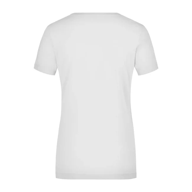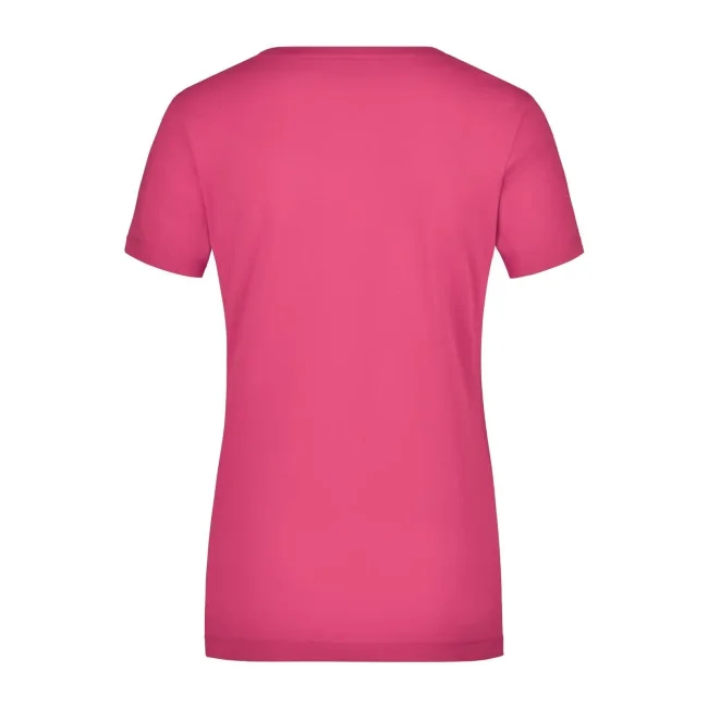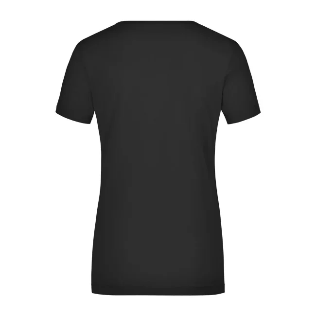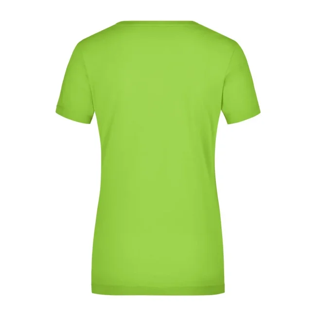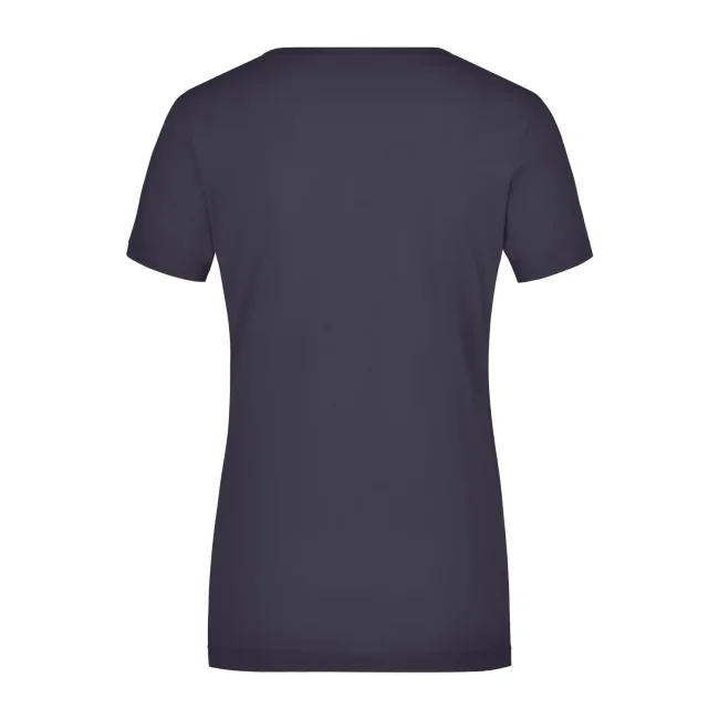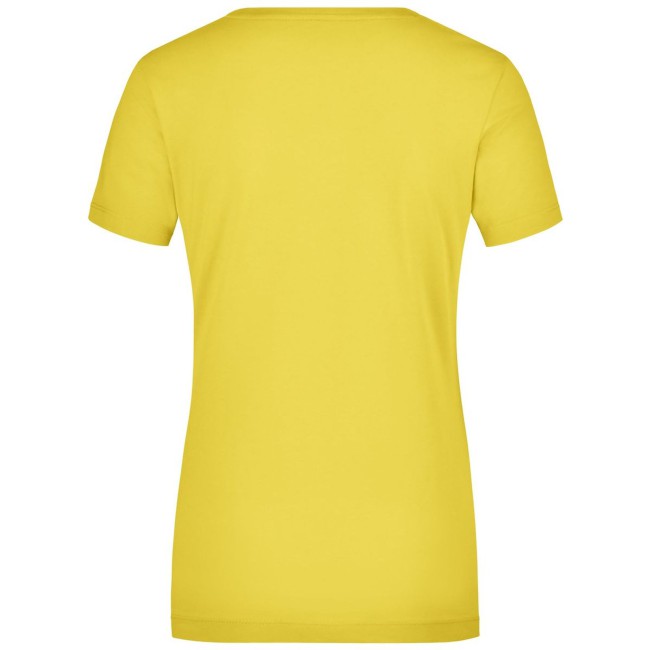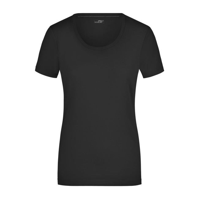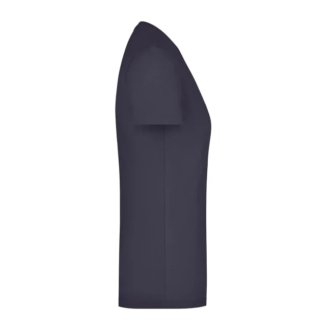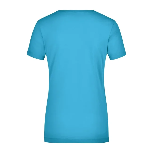 95% cotone, 5% elastane. T-shirt da donna in tessuto elasticizzato, Taglio sciancrato, ampio scollo con bordino stretto. sciancrato.