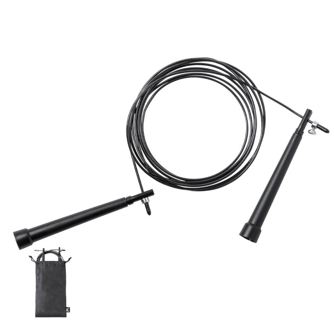 Corda extra lunga regolabile, lunghezza 3 metri, di qualità superiore, realizzata in acciaio con un rivestimento in PVC resistente. Con impugnature ergonomiche. Confezionata in una guaina di poliestere RPET con chiusura a coulisse, realizzata in plastica riciclata per incoraggiare il riutilizzo dei rifiuti plastici e contribuire alla sostenibilità del pianeta. Etichetta distintiva RPET sulla guaina.