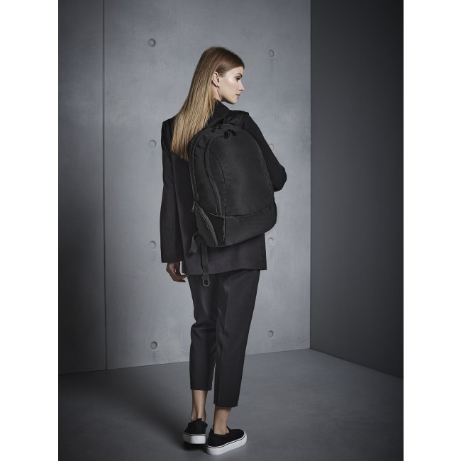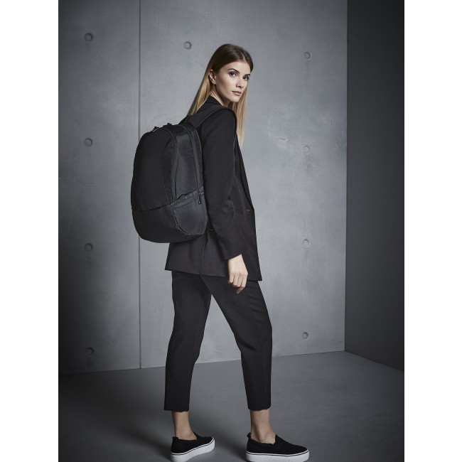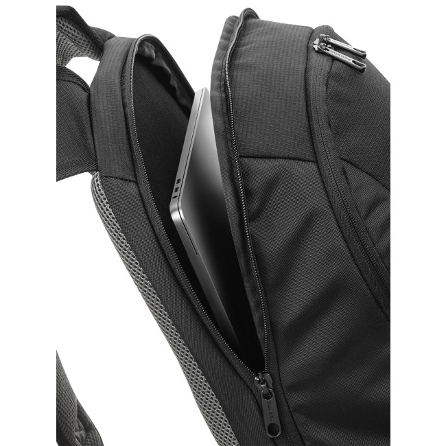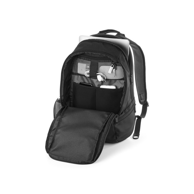 100% 600D micro poliestere rip-stop. Zaino con scomparto imbottito per laptop fino a 15.6", tasca interna e tasche laterali con cerniera, chiusura a zip. Dimensioni: 46x30x18, capacità: 16 litri, area di stampa massima: 15x28 cm .