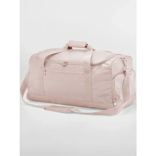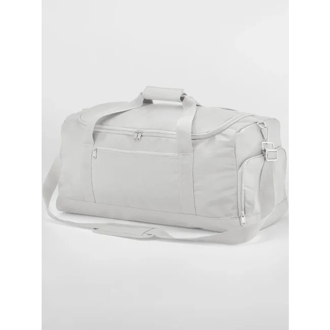 100% poliestere riciclato. Borsone in poliestere riciclato certificato GRS, pannello base rivestito in PU, apertura con due zip bidirezionali, scomparto porta scarpe, tasca frontale con zip, tasca esterna a rete, tasca interna a rete, maniglia imbottita, tracolla regolabile e removibile. Dimensioni: 55x26x27cm, Capacità: 35 litri, Area di stampa frontale: 12x25 cm massimo, superiore: 40x24cm. Etichetta strappabile.
