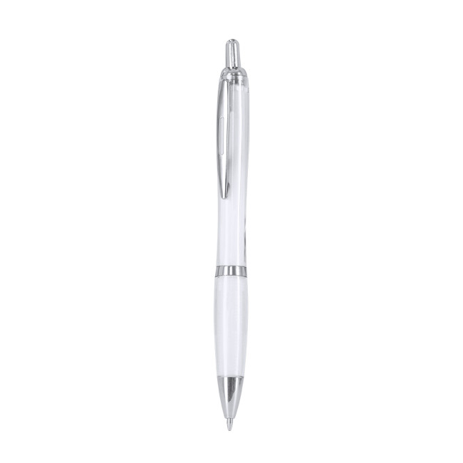 Penna a meccanismo a pulsante in RPET resistente. Realizzato con un design elegante e accessori d'argento. Con pulsante, clip e punta in combinazione. Con inchiostro blu.