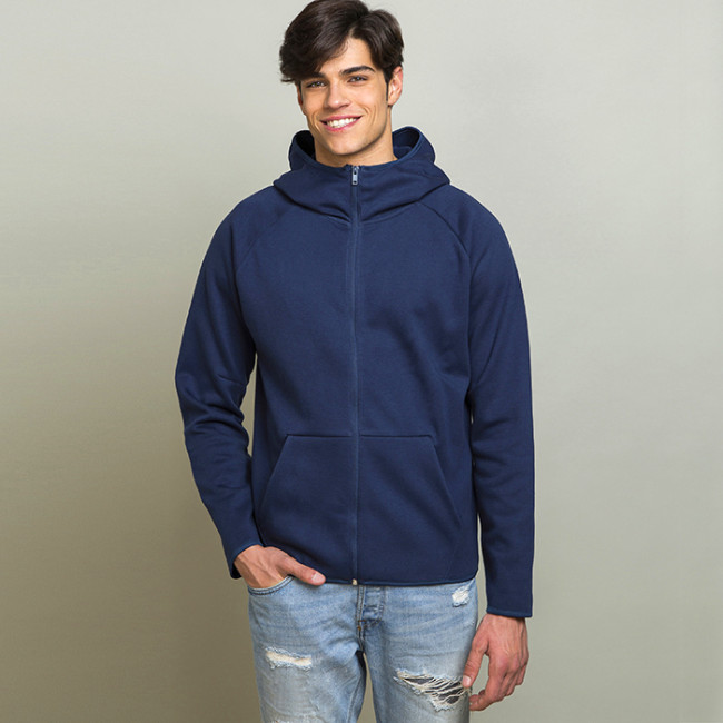 giubbino con cappuccio collo antivento zip lunga con cursore removibile 2 tasche a marsupio fodera interna micropile 100% poliestere ribattitura doppio ago su collo, polsini e orlo nastro di rinforzo interno colori reattivi