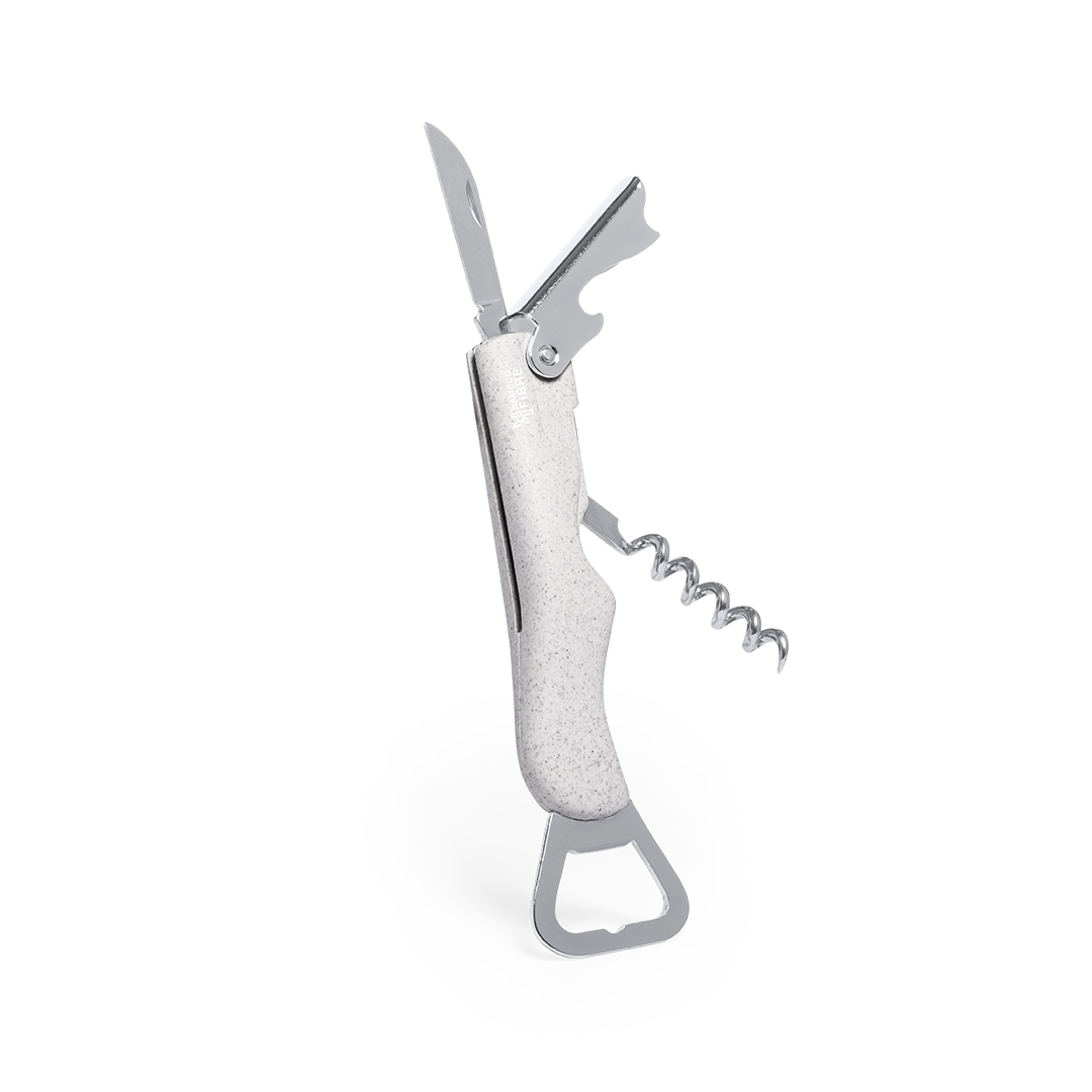 Cavatappi della Linea Nature con apribottiglie e taglia capsule. Realizzato in fibra di bambù e ABS, con accessori in acciaio inossidabile. Confezionato in un attraente cofanetto individuale di eco-design.