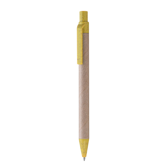 penna in carta penna a sfera, meccanismo a scatto fusto in carta rifiniture in paglia di frumento refill nero tecnica di stampa consigliata: tampografica - serigrafica - UV
