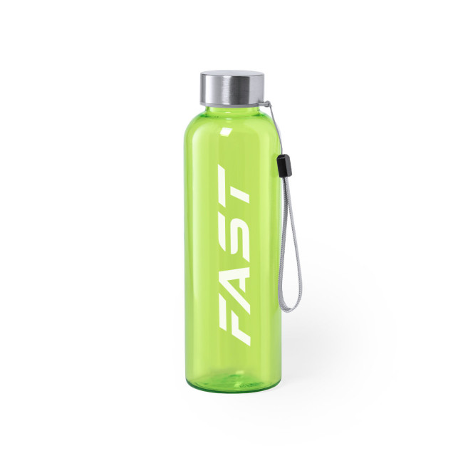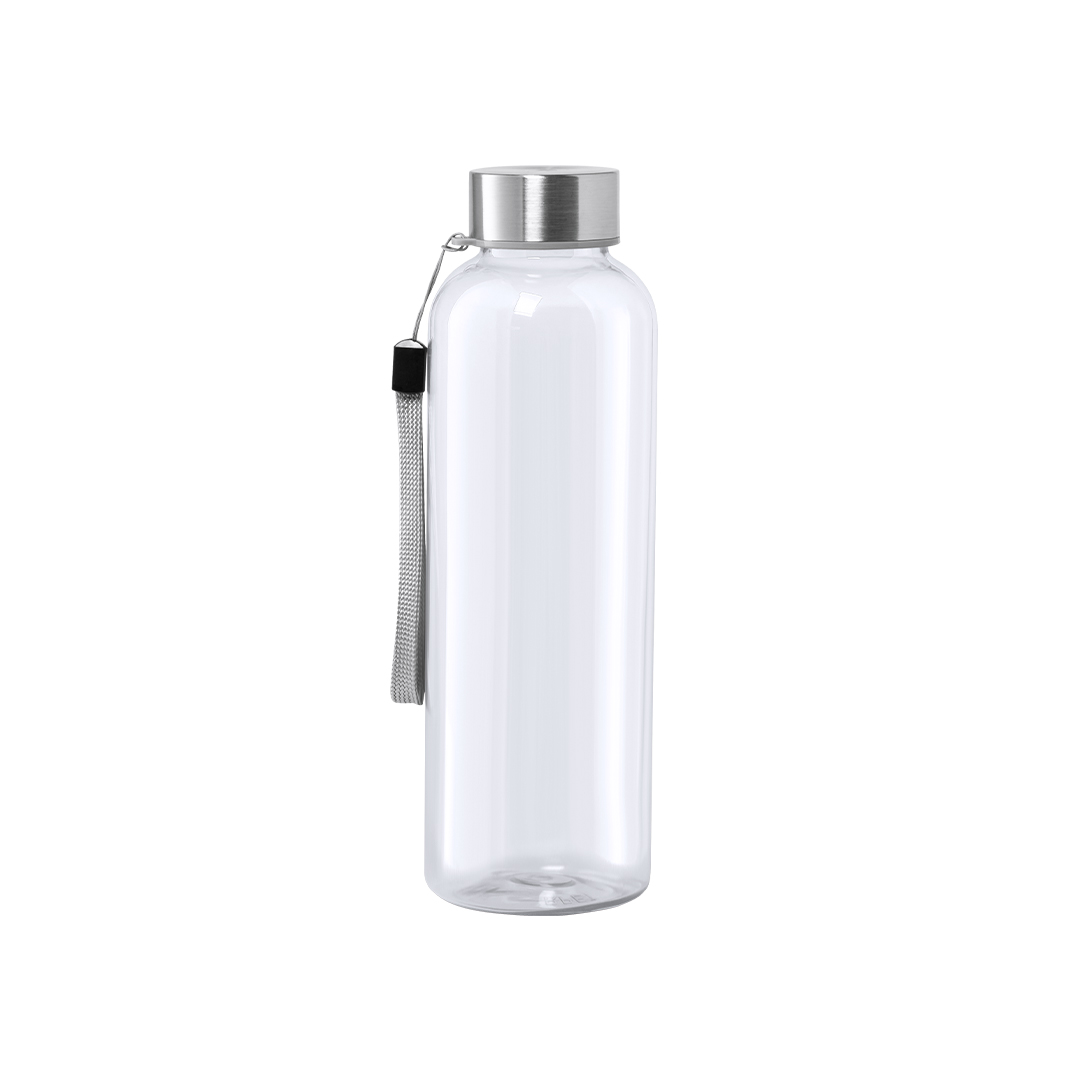 Borraccia in RPET, capacità 600 ml, senza BPA. Tappo a vite in acciaio inox, con laccio per il trasporto. Disponibile in un'ampia gamma di colori.Realizzato in plastica riciclata, per incoraggiare il riutilizzo dei rifiuti plastici e contribuire alla sostenibilità del pianeta".