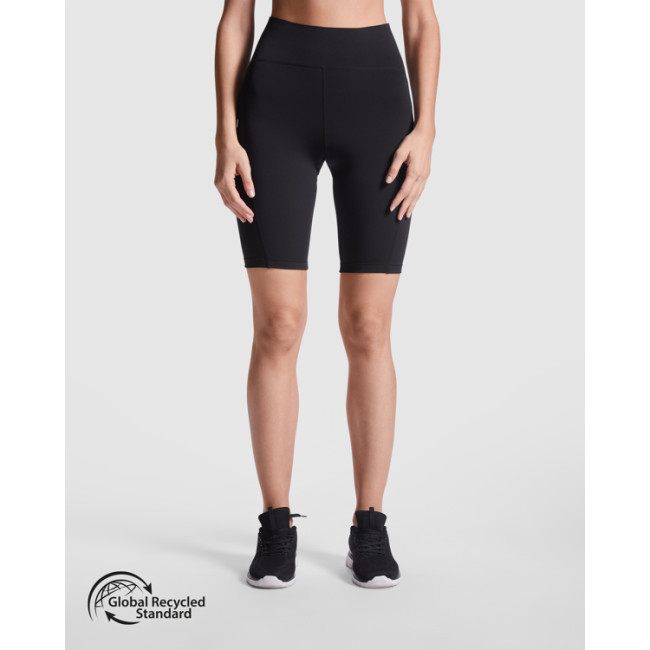 Leggings corti GALES realizzati in poliestere riciclato, progettati per offrire una vestibilità contenitiva. Presentano vita alta in silicone per un comfort ottimale, finiture con taglio laser e cuciture antisfregamento. Realizzati a pezzi per garantire una perfetta aderenza al corpo, sono ideali per attività sportive e quotidiane.