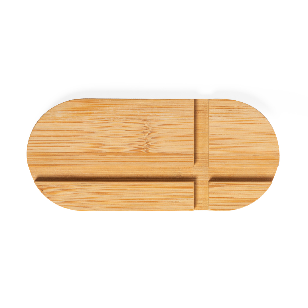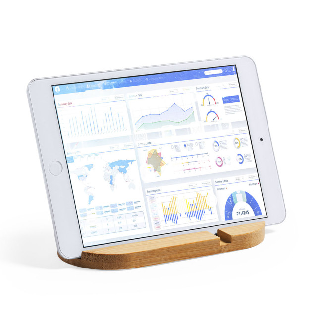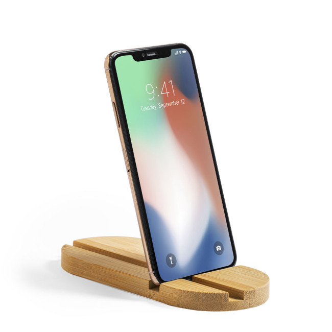 Originale e semplice supporto della linea natura per smartphone e tablet. Fatto di bambù tagliato naturalmente. Confezionato in un'attraente scatola individuale con un design ecologico