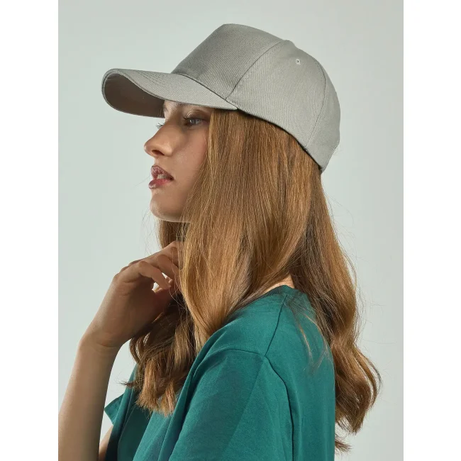 100% cotone. Cappellino a 5 pannelli, occhielli ricamati, pannello frontale rinforzato, visiera pre-curvata, chiusura con fibbia e foro cucito, ideale per la stampa, 6 cuciture su visiera, parasudore in poliestere, taglia unica.