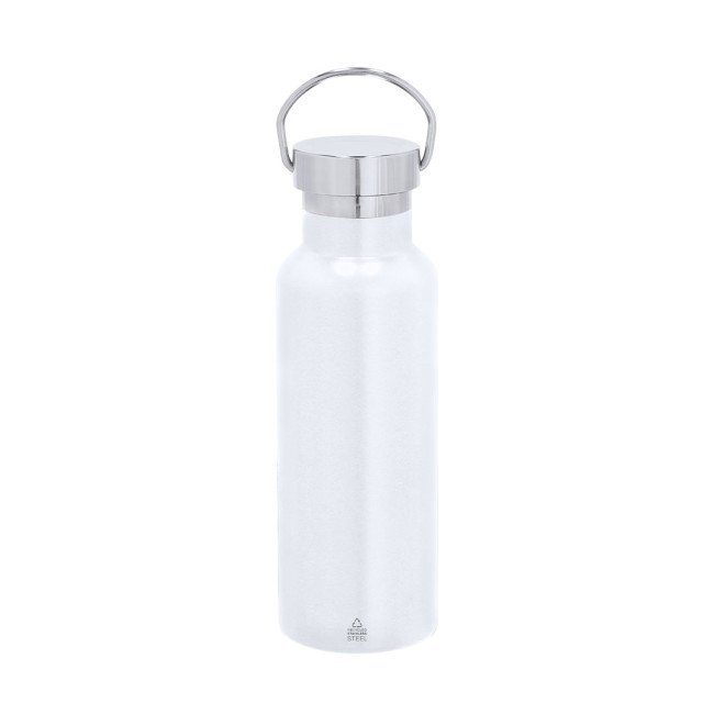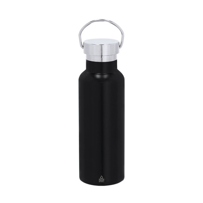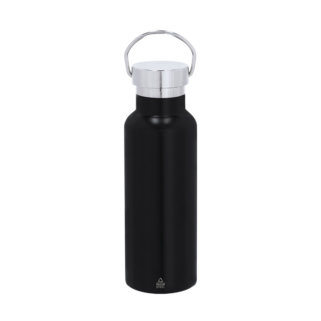 Contenitore termico in Acciaio Inox Riciclato da 500 ml di capacità. Con doppia parete per una migliore e più duratura conservazione della temperatura e interno con rivestimento in ceramica, adatto per bevande gassate. Tappo a vite con solida maniglia di trasporto in acciaio lucido. Con distintivo di Acciaio Inox Riciclato.L'acciaio è uno dei materiali più richiesti e può essere trovato quasi ovunque, da prodotti di uso quotidiano a grandi costruzioni. Con innumerevoli proprietà, tra cui la durabilità e il suo alto grado di riutilizzo, rendendolo un'alternativa molto valorizzata nelle soluzioni di sostenibilità. Adeguatamente trattato, consente di ottenere nuove risorse di utilizzo infinito.