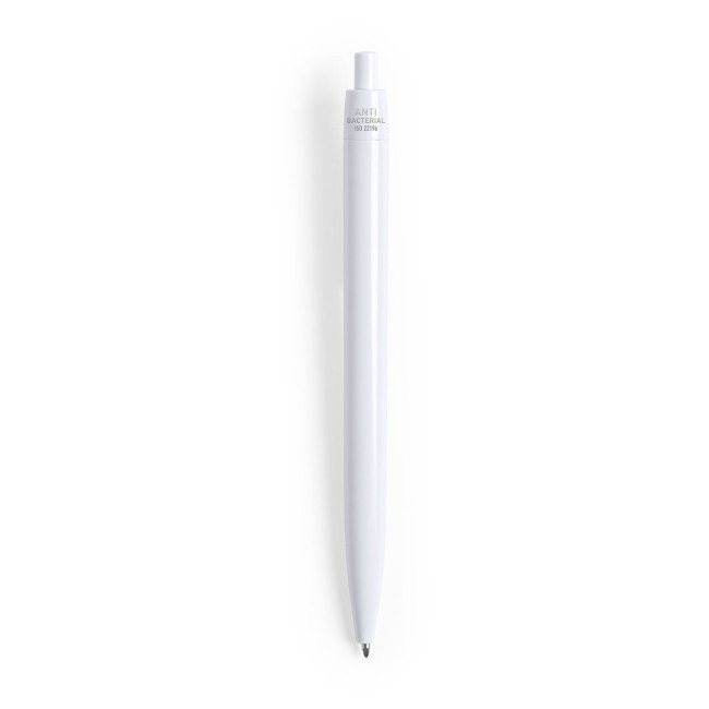 Penna a sfera antibatterica a pulsante. Design monocromatico, in una variegata gamma di colori con finitura lucida, appositamente studiata per la tampografia. Inchiostro blu. I prodotti con trattamenti antibatterici sono in grado di ridurre drasticamente le cariche batteriche presenti sulle superfici dei materiali, grazie all'incorporazione di agenti microbici permanenti statici, altamente efficaci nell'inibire e prevenire la contaminazione batterica. Articolo secondo la norma ISO 22196, che determina l'attività antibatterica in materiali plastici e superfici non porose, che permette di conoscere l'efficacia dell'inibizione microbica che gli additivi hanno sugli oggetti trattati attraverso una valutazione quantitativa
