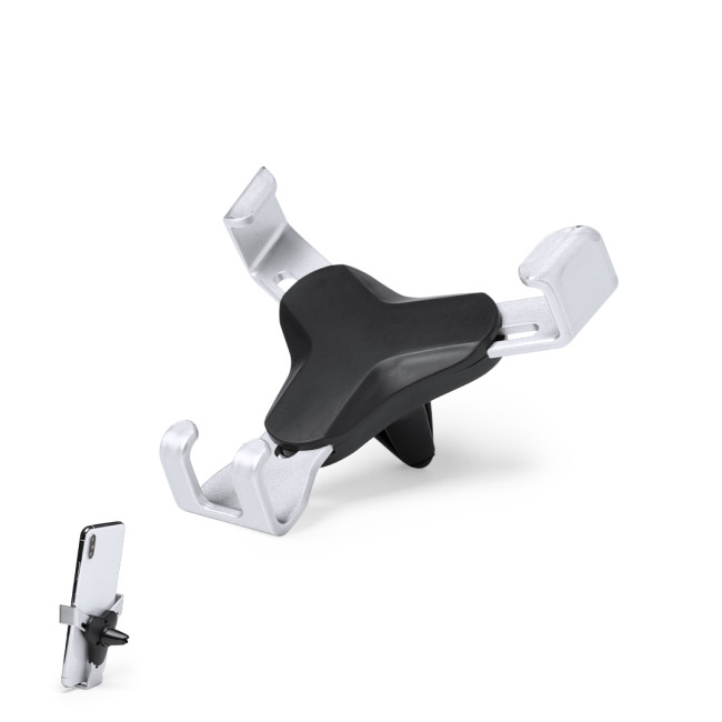 Ingegnoso supporto per smartphone con un design minimalista e appositamente progettato per smartphone di dimensioni XXL. Con sistema di fissaggio universale che viene attivato dal peso del telefono, regolando le pinze una volta che il dispositivo è posizionato nel supporto. Per griglia di ventilazione auto e con frontale appositamente progettato per tampografia.