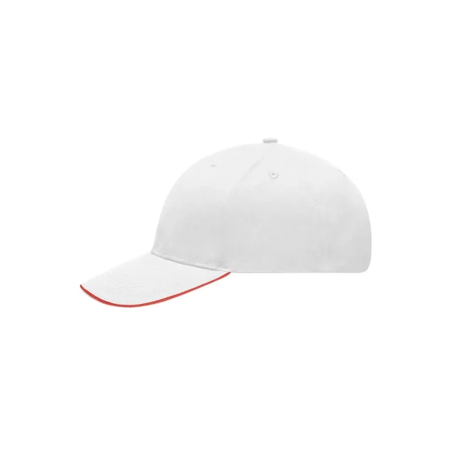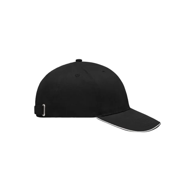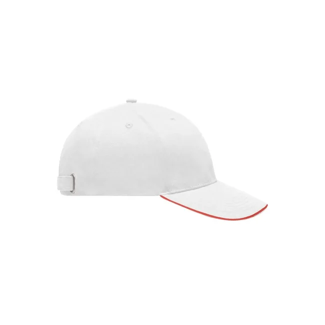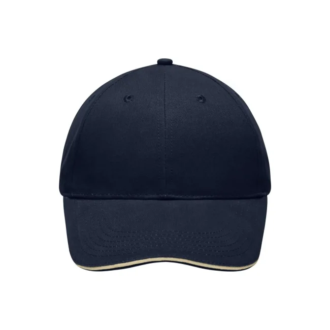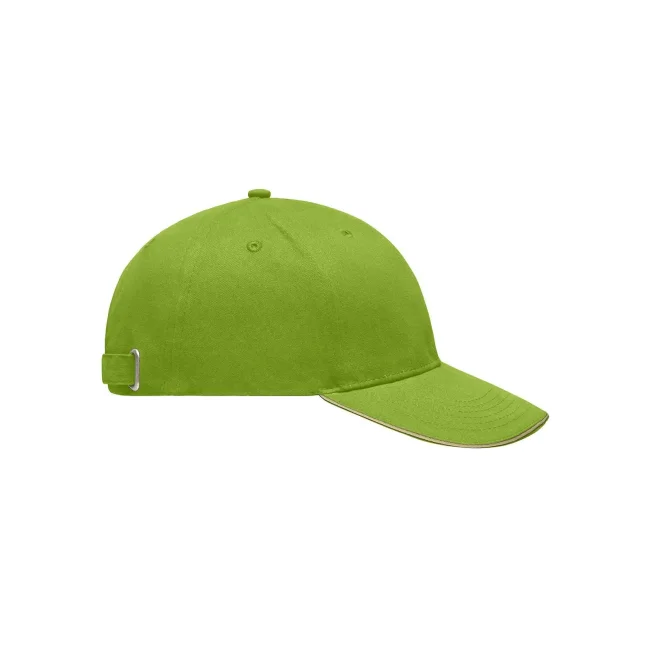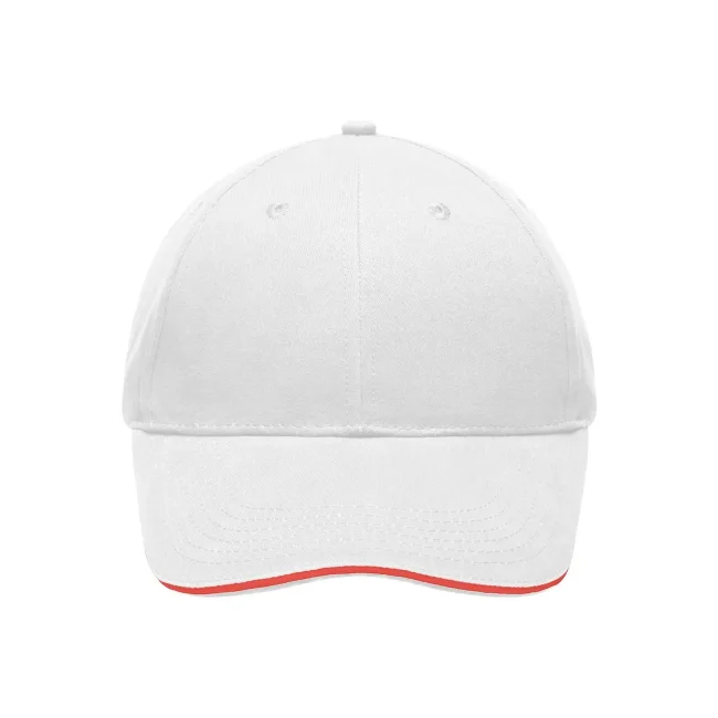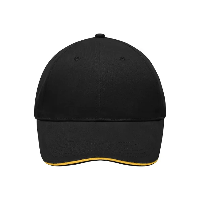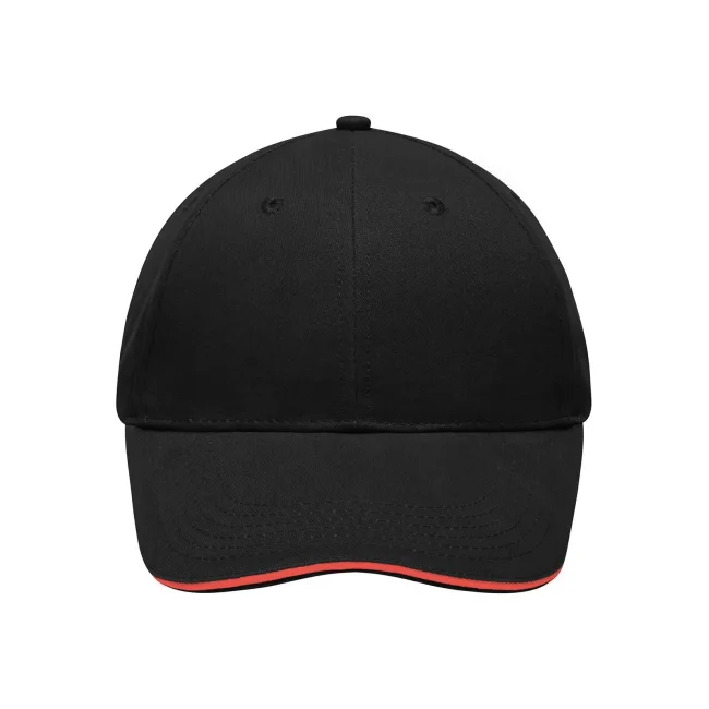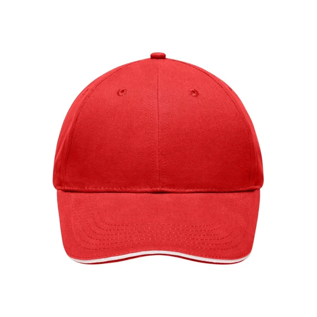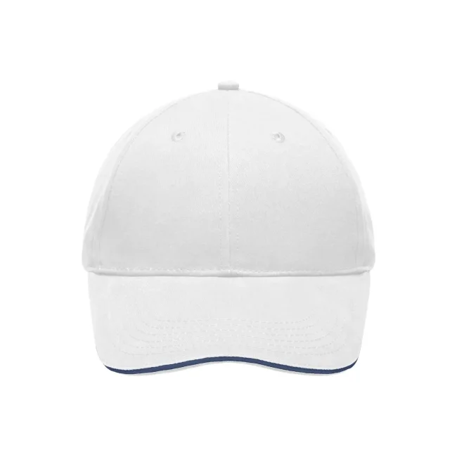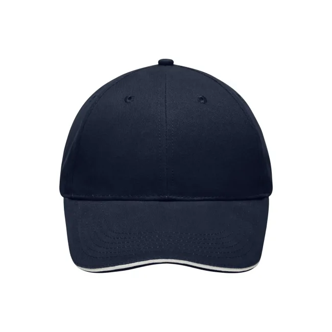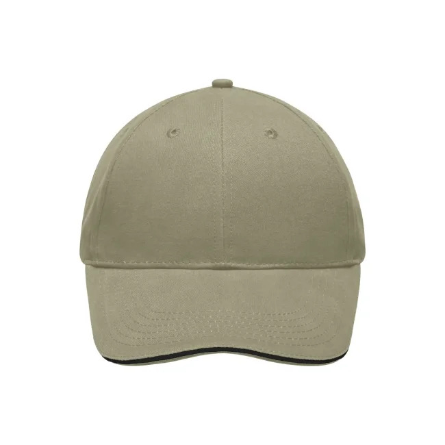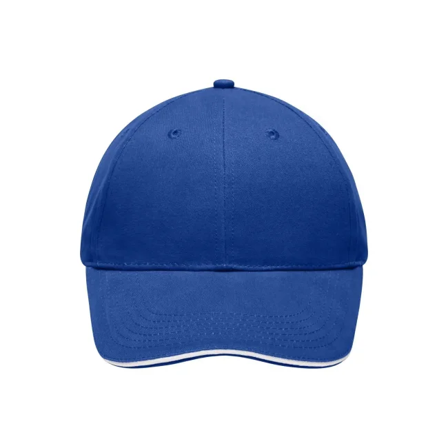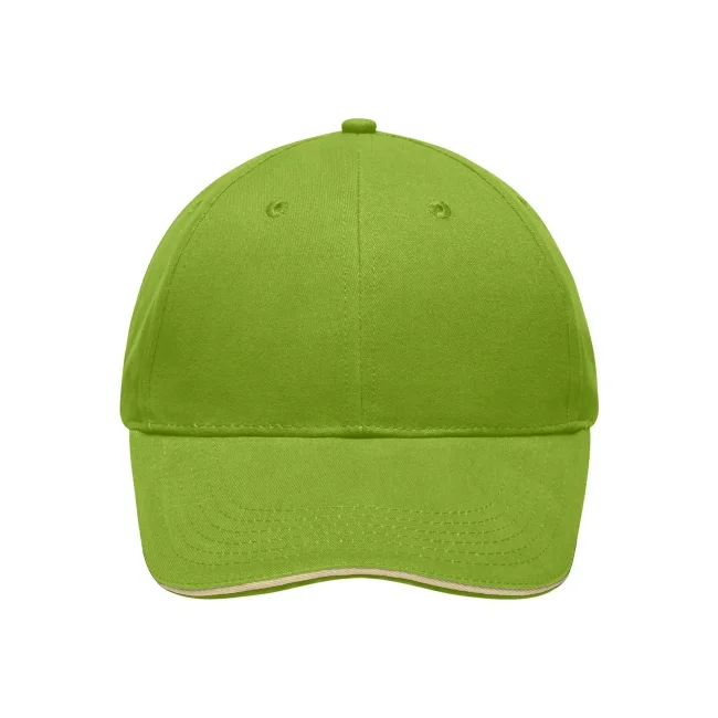 100% cotone. Sandwich Cap leggero e morbido a 6 pannelli 6 fori di aerazione imbastiti, 6 cuciture sulla visiera, Pannelli frontali laminati, Fascetta tergisudore imbottita in Satin, Chiusura a clip in argento opaco con asola in metallo, Cotone spazzolato ruvido, policromo, Sandwich.