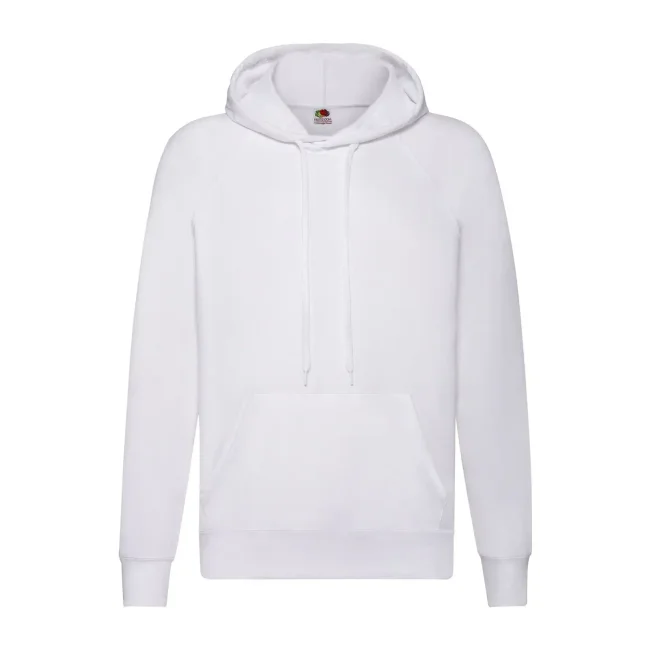 80% cotone Filato Belcoro, 20% poliestere. Felpa leggera sgarzata, maniche raglan, orlo inferiore e polsini in costina cotone/Lycra. Cappuccio con cordino tono su tono, struttura con busto tubolare e tasca a marsupio. Etichetta removibile.