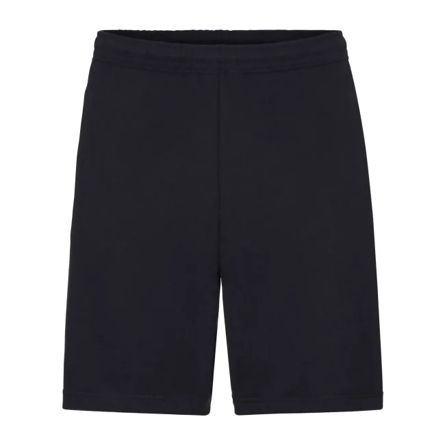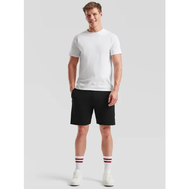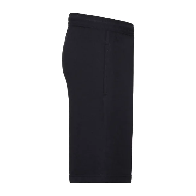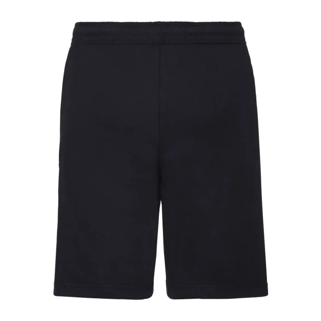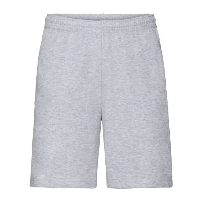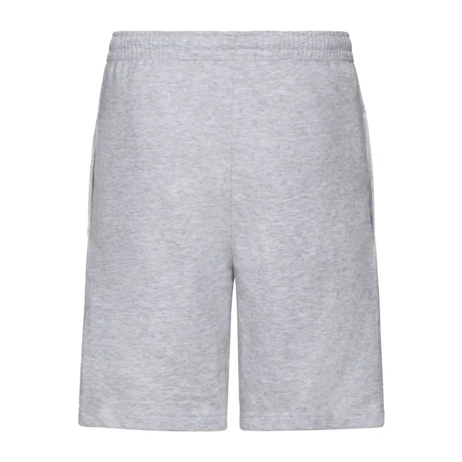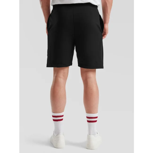 80% cotone Filato Belcoro, 20% poliestere. Pantaloncini corti in felpa leggera sgarzata, vita elasticizzata con cordoncino e tasche laterali.