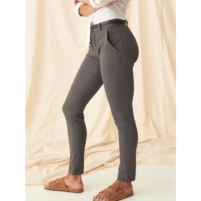 98% cotone, 2% elastan. Pantaloni donna skinny fit. Tasche frontali e posteriori con bottone di chiusura. Passanti per cintura, bottone in vita e chiusura con zip YKK. Massimo comfort e libertà di movimento.