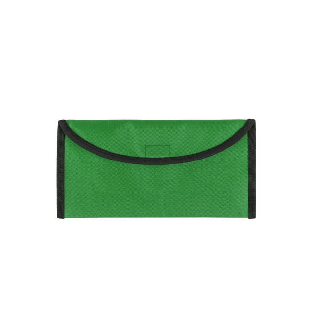 Portadocumenti da viaggio in resistente poliestere 600D in un'ampia gamma di colori vivaci. Con chiusura a velcro, interno foderato e attacco per cintura sul retro.