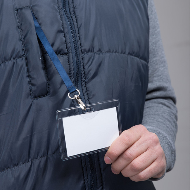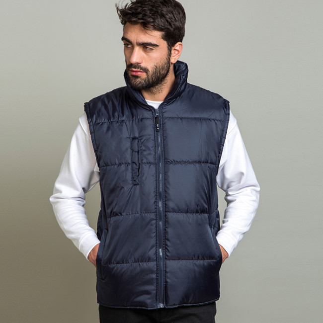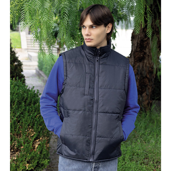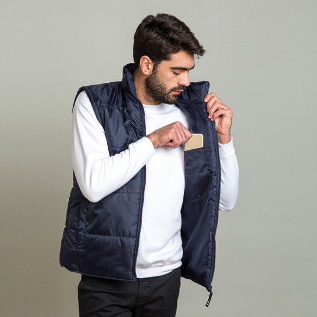 giubbino smanicato in poliestere zip lunga con cursore removibile tasca interna tasca frontale verticale con badge a scomparsa due tasche laterali