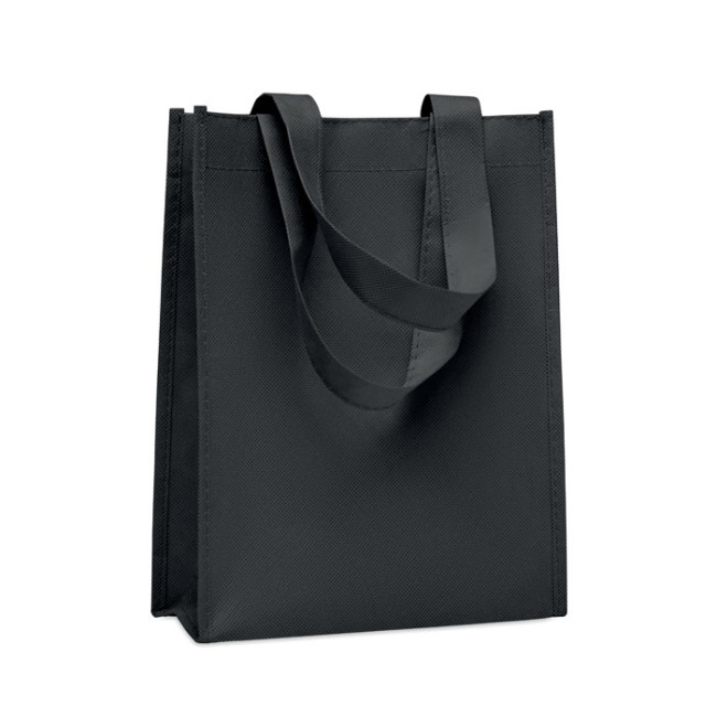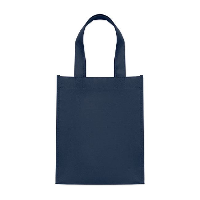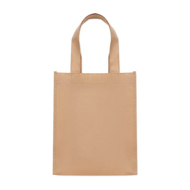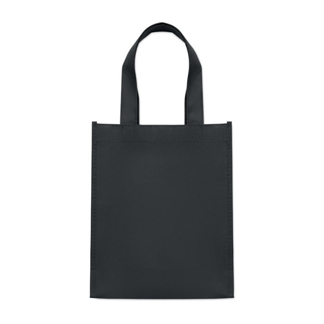 Piccola borsa regalo in TNT RPET con manici corti e soffietti sul fondo. 80 gr/m².