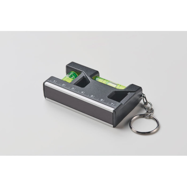 Portachiavi in ABS con doppia livella magnetica, un accessorio utile e pratico per misurazioni quotidiane. Questo portachiavi è facilmente personalizzabile con logo, rendendolo un gadget ideale per aziende e professionisti.
