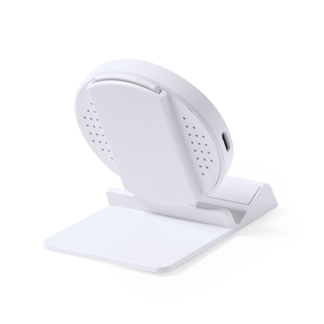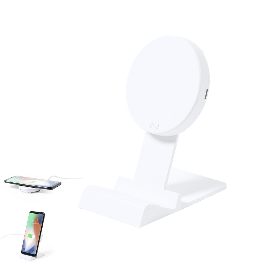 Caricatore wireless a ricarica rapida da 15W. In elegante finitura bianca, con base di ricarica regolabile in altezza e funzione di supporto per smartphone. Compatibile con i dispositivi dotati di tecnologia di ricarica wireless. Cavo di ricarica di tipo C incluso, con ampia area di stampa. Confezionato in una scatola dal design accattivante. Manuale d'istruzioni in inglese e spagnolo disponibile. Conforme ai requisiti di sicurezza:Sistema di protezione dal surriscaldamento.Sistema di protezione da sovraccarico.Sistema di bloccaggio per evitare cortocircuiti