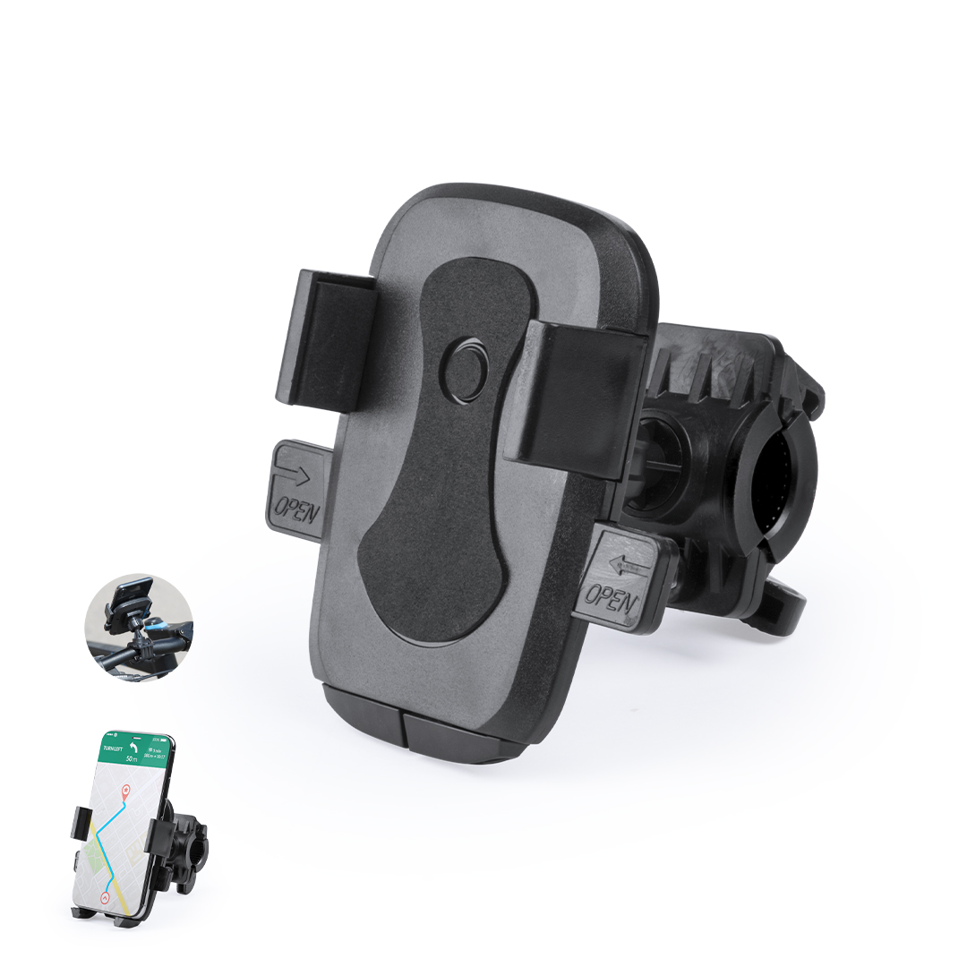 Pratico e robusto supporto da manubrio per smartphone. Con 3 posizioni, rotazione a 360° e angolo di inclinazione fino a 45°. Clip di presa robusta e presentato in una scatola dal design accattivante
