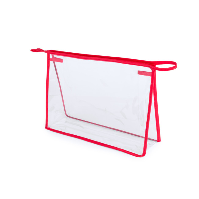 Beauty Case multiuso in robusto PVC trasparente con profili rinforzati ed in colori vivaci. Con cerniera e maniglia di trasporto coordinati.