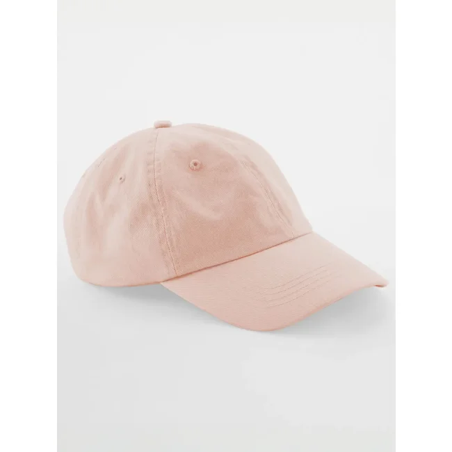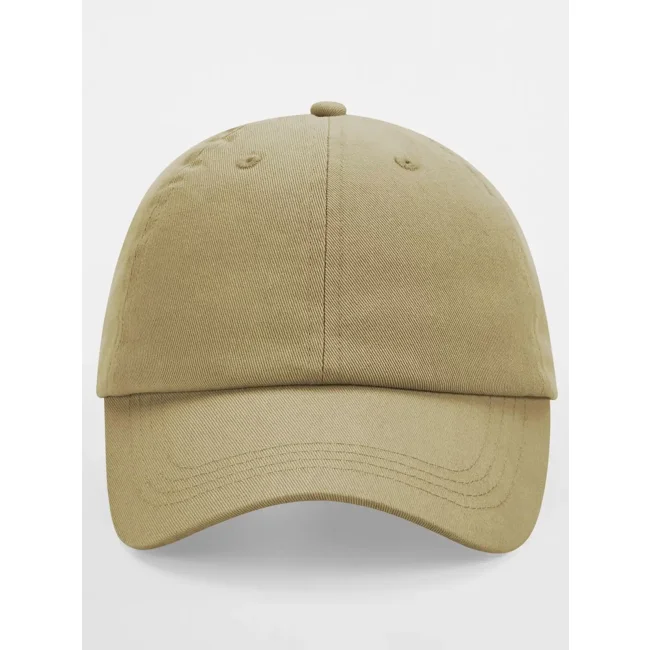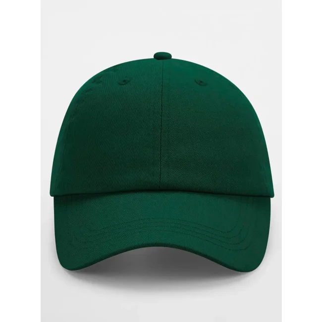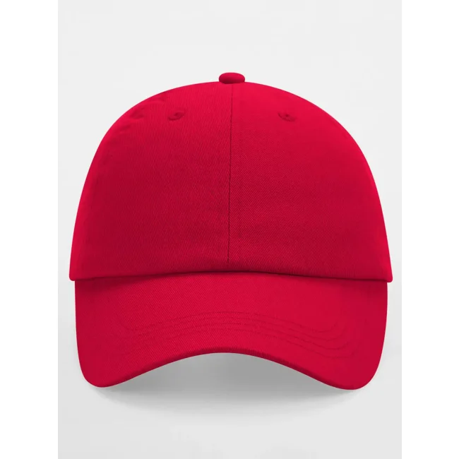 100% cotone chino. Cappellino a 6 pannelli con calotta morbida senza intelaiatura, etichetta facilmente rimovibile, visiera pre-curvata, occhielli di ventilazione cuciti, chiusura con fibbia e occhiello satinato, taglia unica.