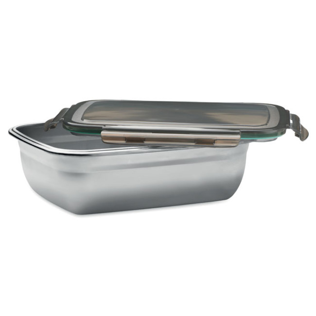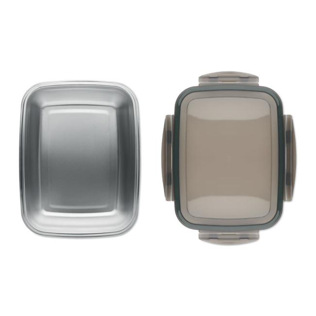 Portapranzo in acciaio inox riciclato con coperchio in PP e chiusura a 4 lati. Incluso separatore. Capacità: 1500 ml.