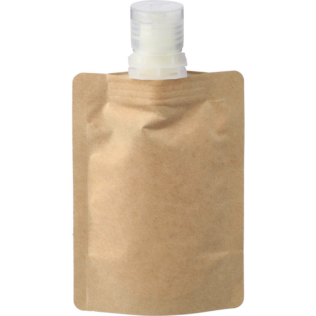 Lozione solare protezione SPF 30, confezionata in un sacchetto di carta kraft, tappo bianco in PP, capacità 50 ml