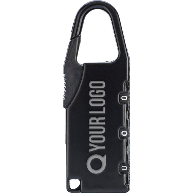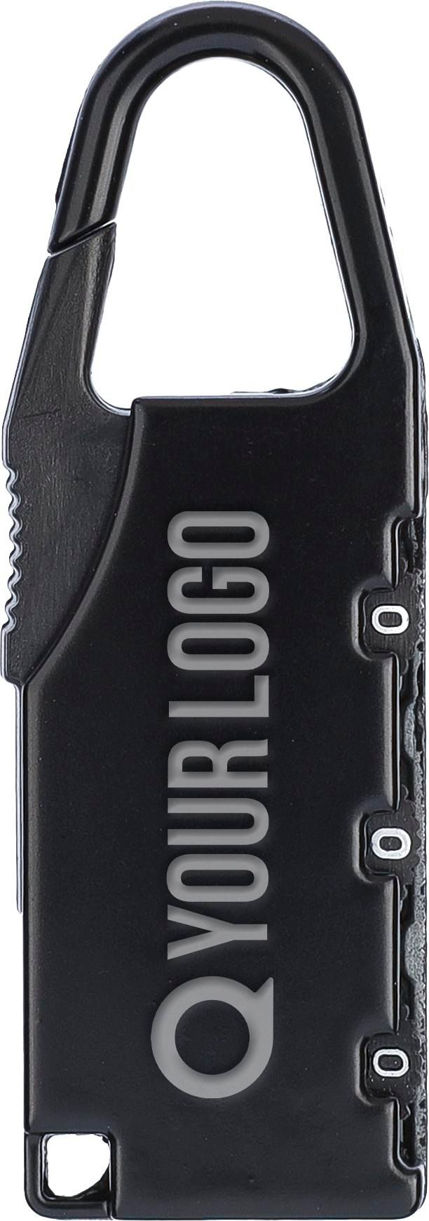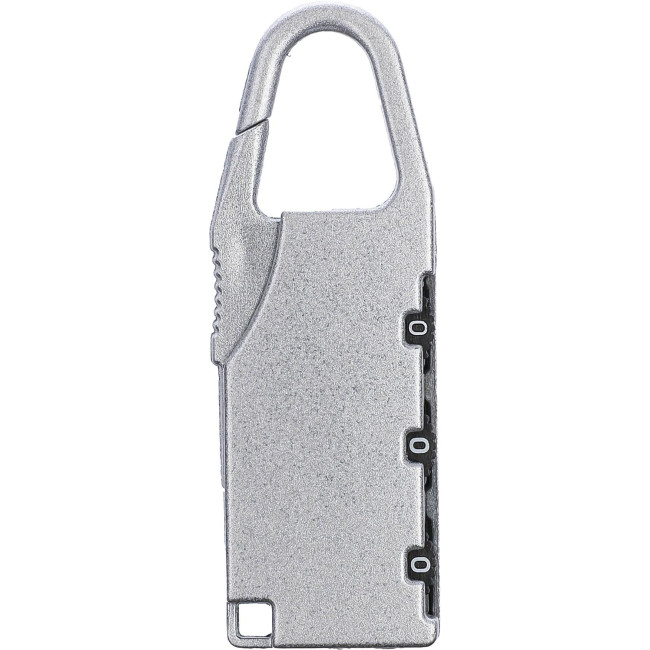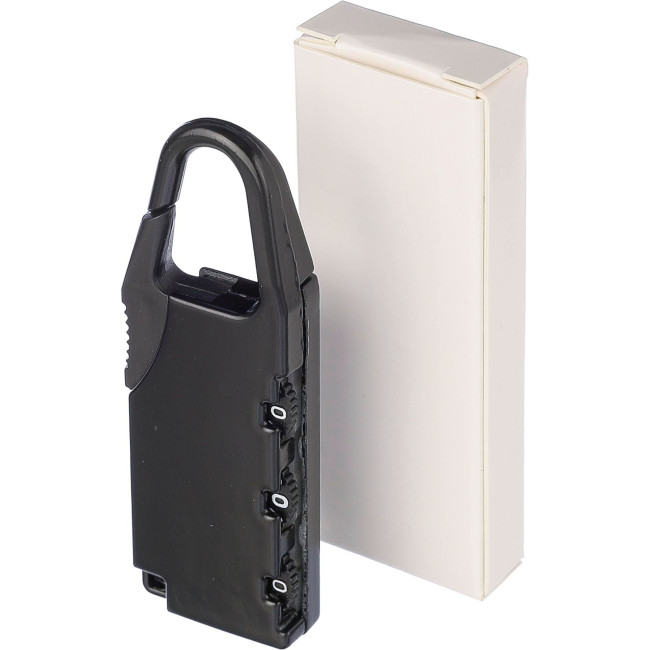Lucchetto con moschettone numerico in lega di zinco, istruzioni incluse, confezionato singolarmente in una scatola in cartone bianca