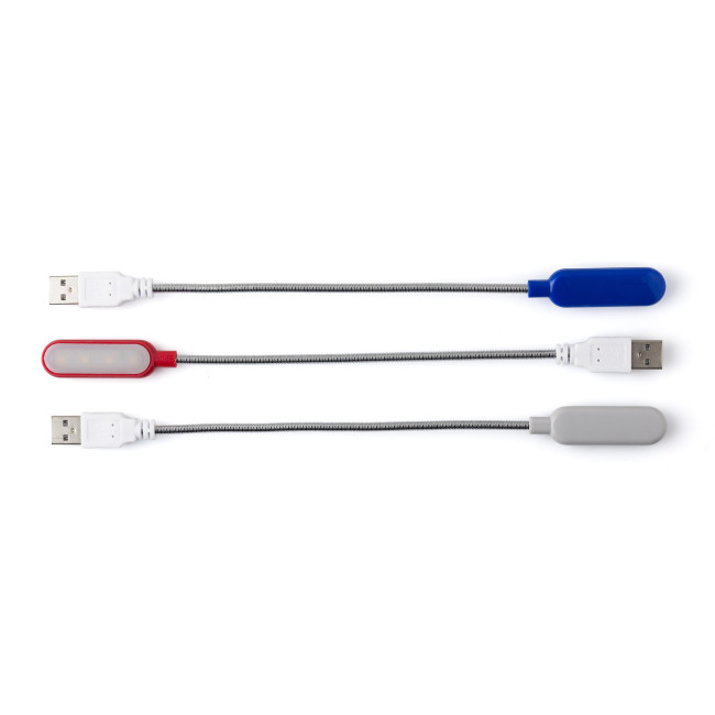 Luce per laptop portatile con braccio flessibile, tre luci LED e connettore USB, confezionato in polybag, in ABS e metallo
