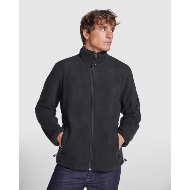 Felpa in micropile per il tempo libero, collo alto e maniche lunghe con rifiniture a contrasto. Tasca con zip sulla manica sinistra e cerniera centrale, entrambe a contrasto. Cuciture laterali. Rinforzo sul gomito dello stesso tessuto.