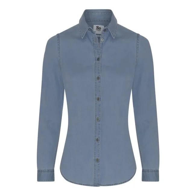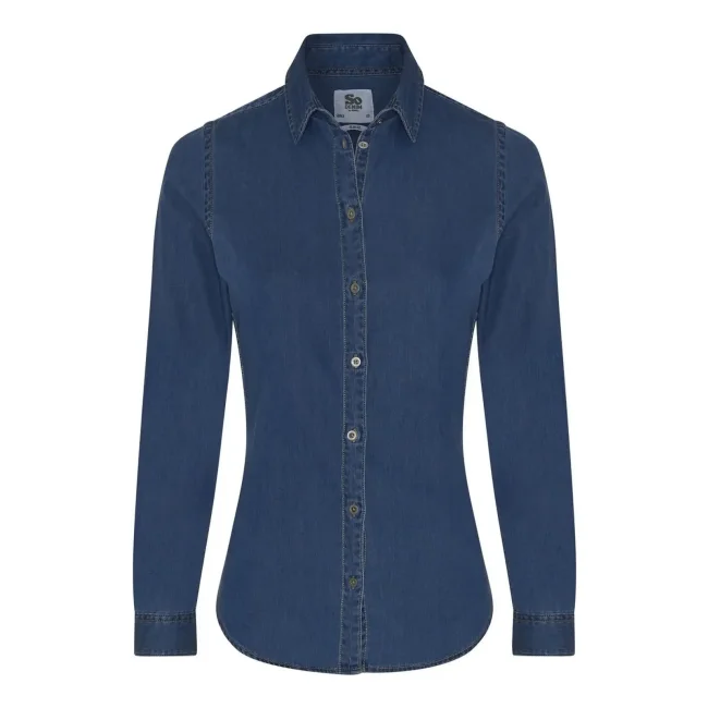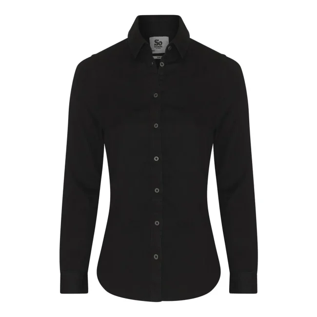 100% cotone. Camicia donna manica lunga senza tasche, leggermente sfiancata ai lati. Cuciture laterali in contrasto, cuciture in contrasto su maniche, colletto e polsini. Polsini con due bottoni ciascuno, ideale per la personalizzazione.
