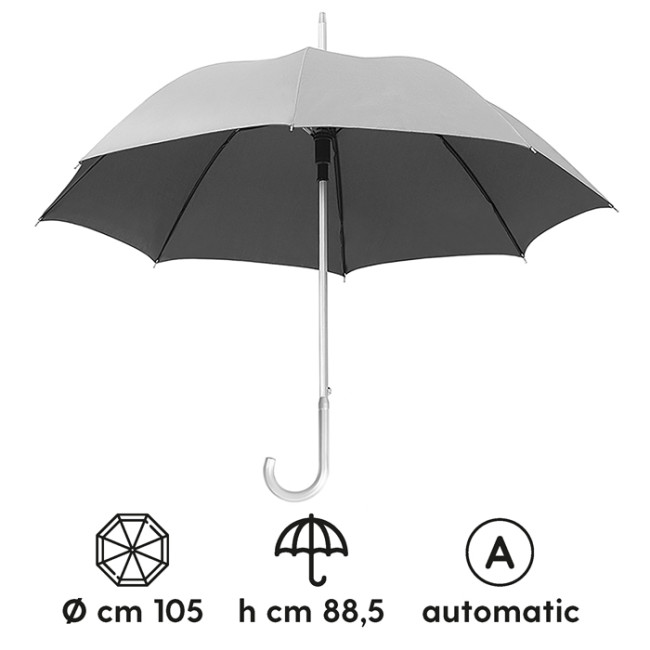 ombrello automatico struttura in fibra di vetro fusto, manico e puntale in alluminio chiusura con velcro tecnica di stampa consigliata: serigrafica - transfer