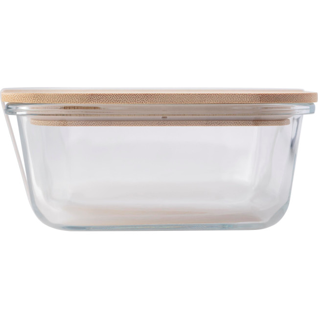 Lunch box in vetro, coperchio in bambù adatto per il microonde, cinturino in silicone, capacità +/- 900 ml