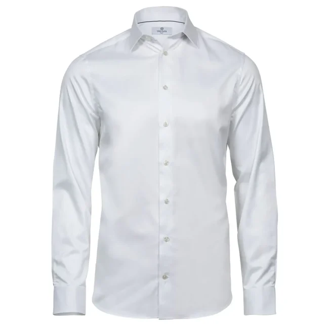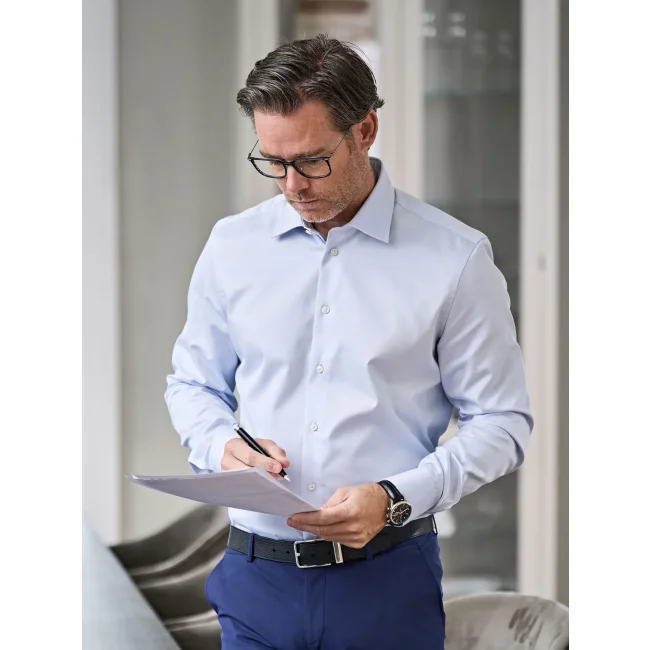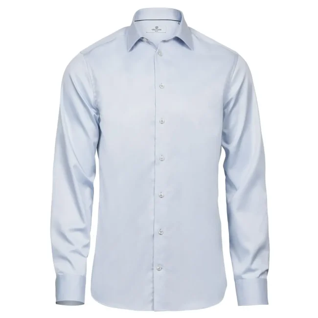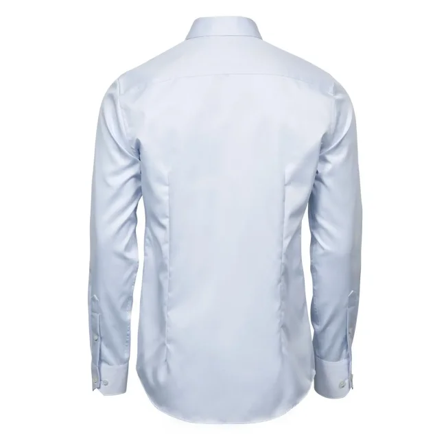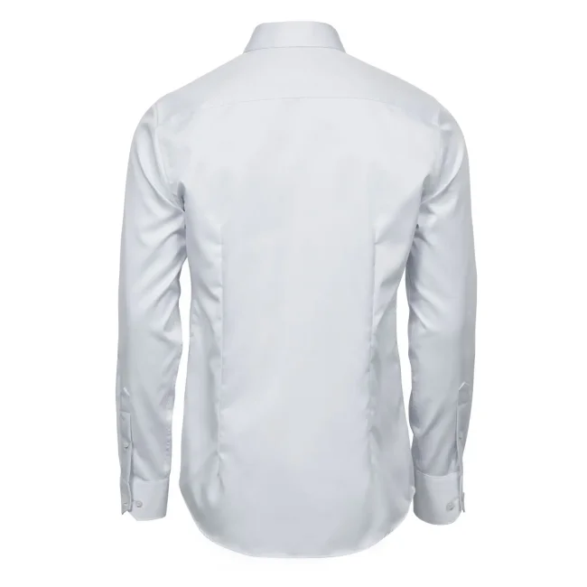 100% cotone twill tinto. Camicia elegante con colletto alla francese, e polsini con due bottoni carré posteriore, pinces sul retro, orlo stondato. Tessuto 100% twill doppio doppio.