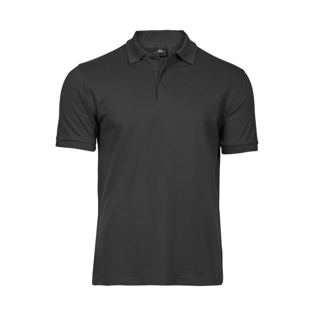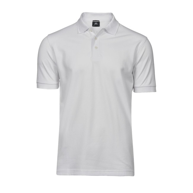 95% cotone organico ring-spun, 5% elastan. Polo a maniche corte set-in, tessuto mini piqué, colletto a costine in Lycra, nastro di rinforzo al collo, 3 bottoni tono su tono, struttura con cuciture laterali.