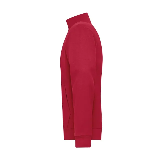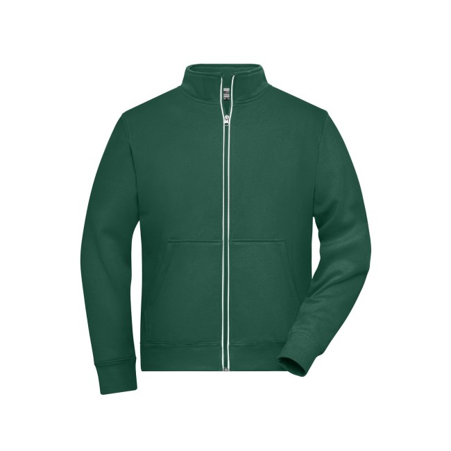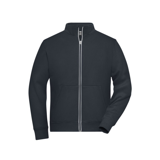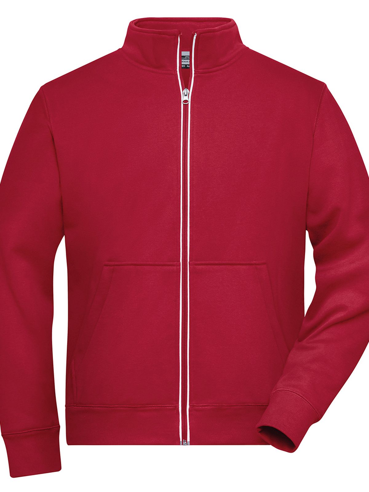 55% poliestere 45% cotone. Felpa da lavoro in tessuto confortevole doppio strato, strato esterno in cotone single jersey, strato interno in pile, zip frontale riflettente (senza funzione protettiva / senza DPI), tasca a marsupio con zip nascoste YKK e polsini elastici.