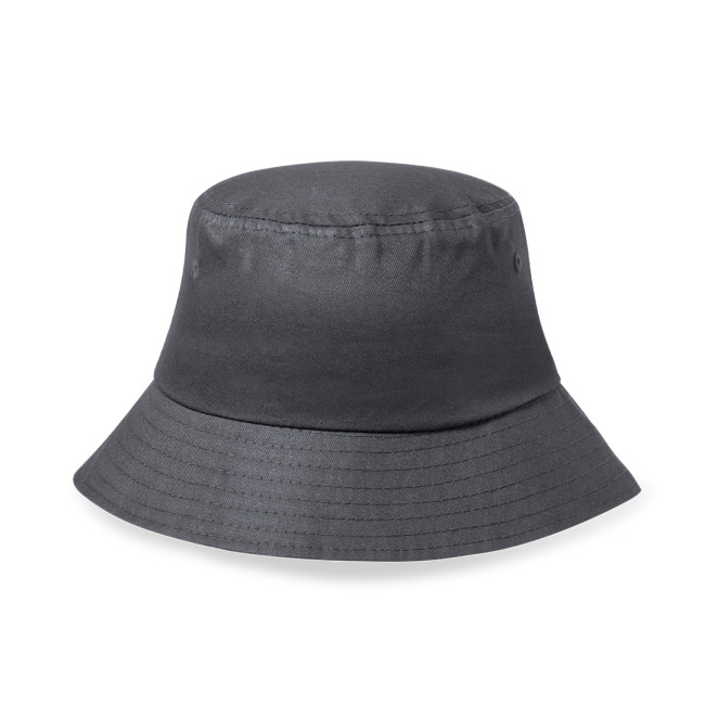 Cappello modello bob realizzato in resistente cotone riciclato al. Con fori di ventilazione ricamati e disponibili in diversi colori. Logo cotone riciclato sull'etichetta esterna. Con certificazione GRS (Global Recycled Standard), che garantisce l'origine riciclata del materiale utilizzato per la fabbricazione del prodotto.